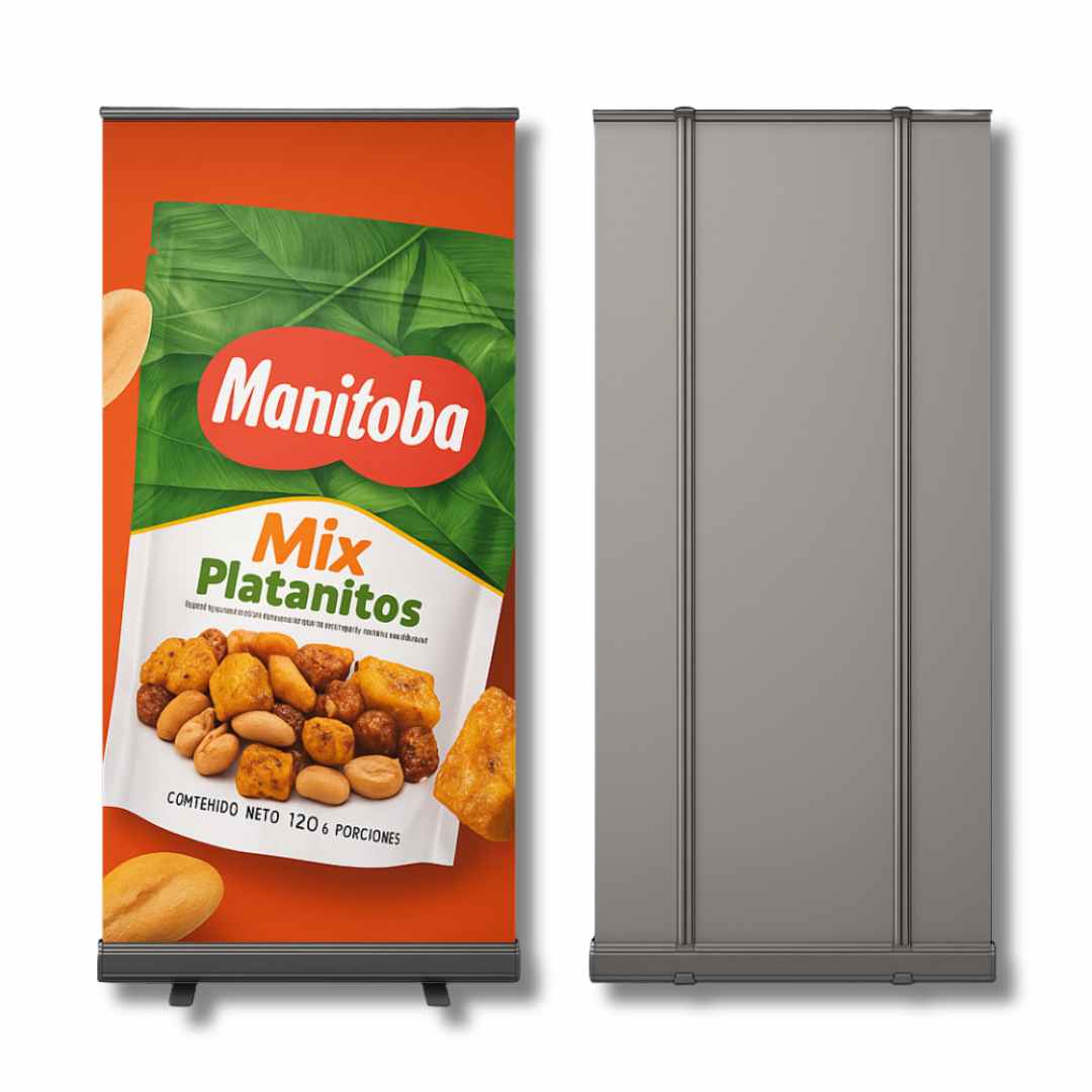 Este formato tipo roll up retráctil destaca por su facilidad de transporte, rapidez de montaje y excelente presencia visual, convirtiéndose en una herramienta indispensable para estrategias de comunicación presencial. Gracias a su tamaño estándar de 80×200 cm, permite una lectura clara del mensaje, logotipos visibles y una composición gráfica equilibrada sin ocupar grandes superficies.