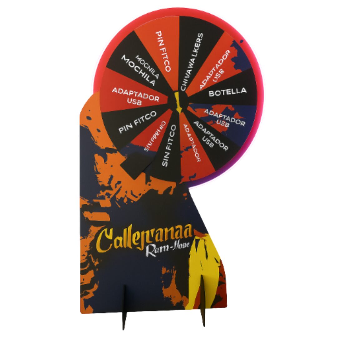 El diseño gráfico está incluido en el valor, permitiendo personalizar completamente la ruleta según la identidad de la marca, la campaña o la dinámica promocional. Nuestro equipo ajusta cada arte para asegurar equilibrio visual, contraste adecuado y lectura clara desde diferentes distancias.